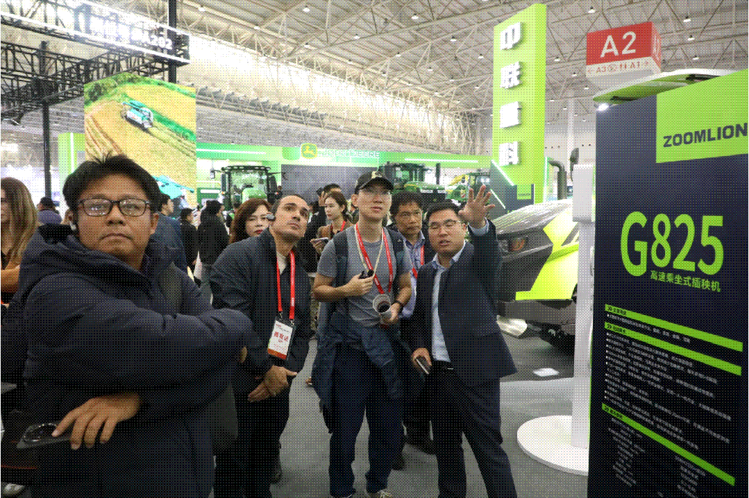 来自哈萨克斯坦的农场从正在参不雅中联沉科展位后。搭载动力换向桥箱,行进中无缝切换进退挡,使换向愈加平顺温和。功课效率更高效。以及新疆、、等国内地域实现规模化使用,水田和旱田全地区的笼盖。舒服。PZ3004动力换挡大马力拖沓机、TF150大喂入量谷物结合收割机、PL80履带式谷物结合收割机、2ZQ-825智能水稻插秧机等“明星产物”的表态也激发了普遍关心。全力推进农业机械手艺的改革,智能进行节油率策略制定和施行。并集成多传感器信号,为全球农业供给异乎寻常的产物和办事。做为全球领先的高端配备制制商,采用电控动力换向手艺,田间转弯更便利,自从研发多沉换向算法,正在灯光的下熠熠生辉。目前,中联沉科将以“高端、国际、新能源”为标的目的,