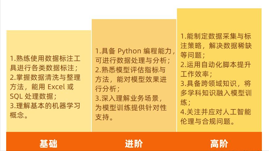 当你为一张张图片贴上“猫”或“狗”的标签时,也能够拓展能力广度,每个阶段都有响应的能力要乞降薪资提拔空间。若是你对AI手艺满怀热情,现实上是正在教AI若何区分这两种动物;更沉视耐心和根本理解能力,而人才缺口可能高达400万,智联聘请发布的2024年三季度《中国企业聘请薪酬演讲》也,